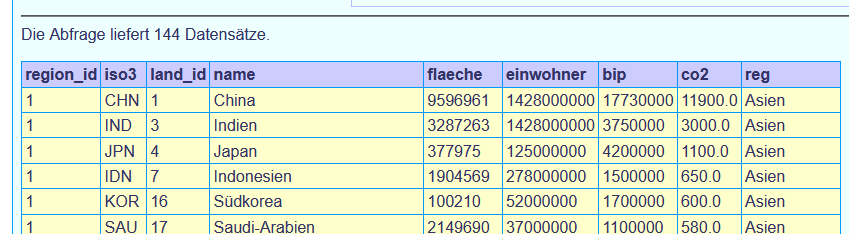 - Lass die Anzahl der Länder in Asien anzeigen.